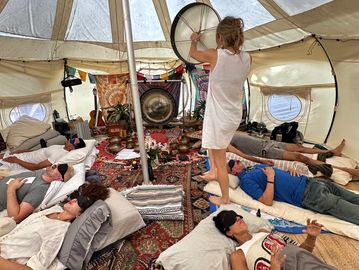 Sessions may include breathwork, somatic awareness, relational practices, and immersive sound healing.